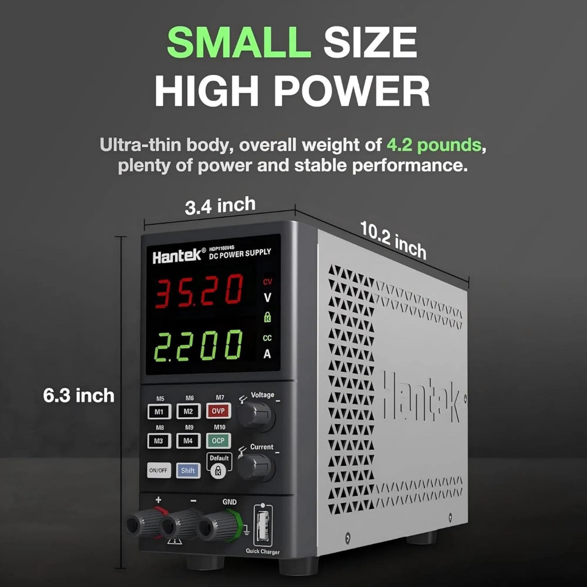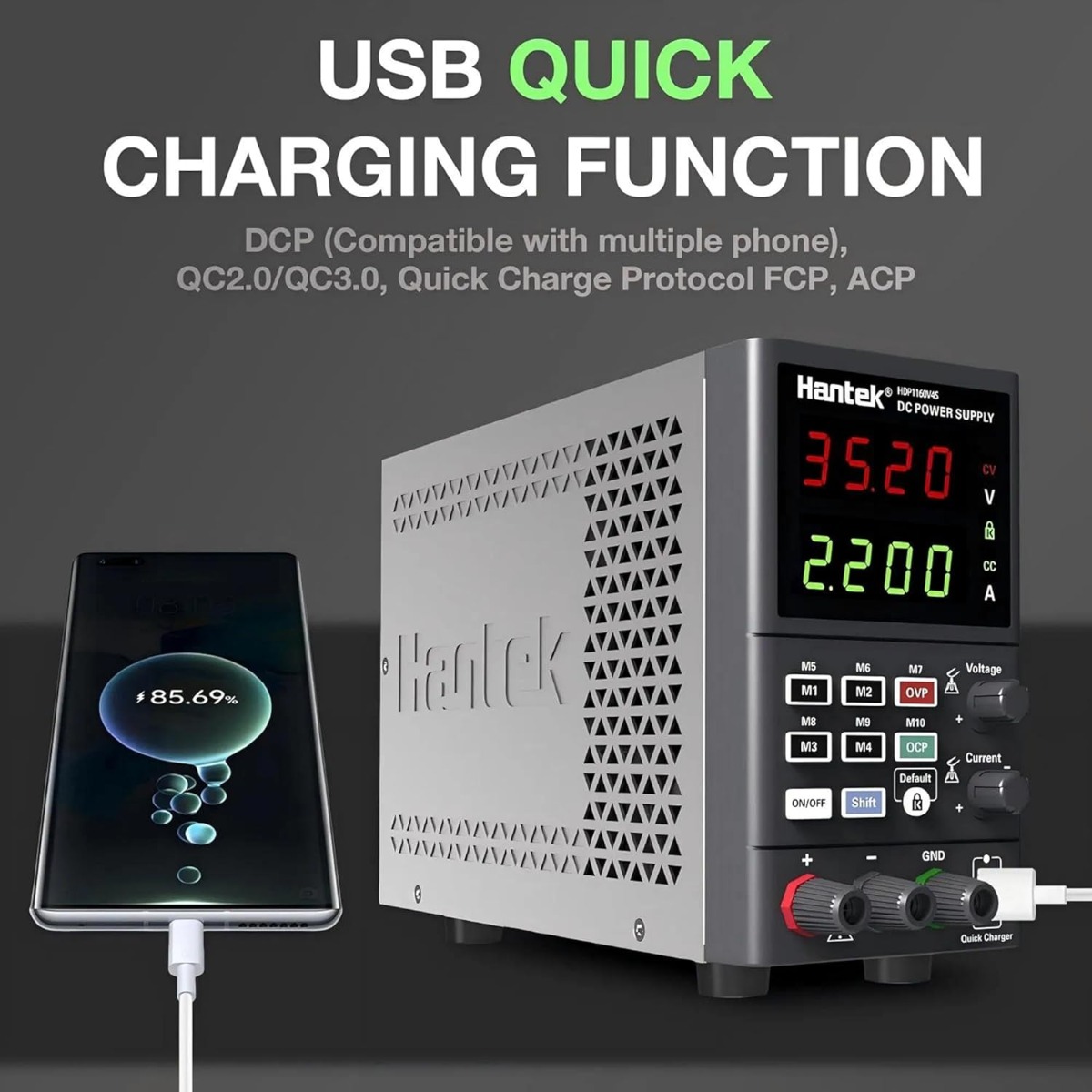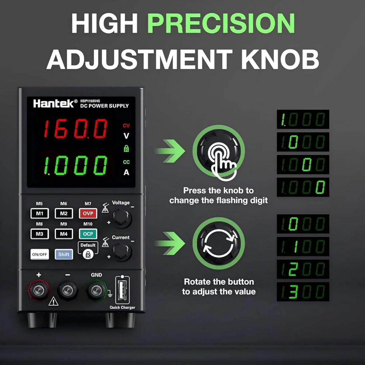 Hantek HDP1160V4S แหล่งจ่ายไฟ DC แบบโปรแกรมได้ 160V 4A 180W พร้อมหน้าจอ 4 หลัก และ USB Fast Charge