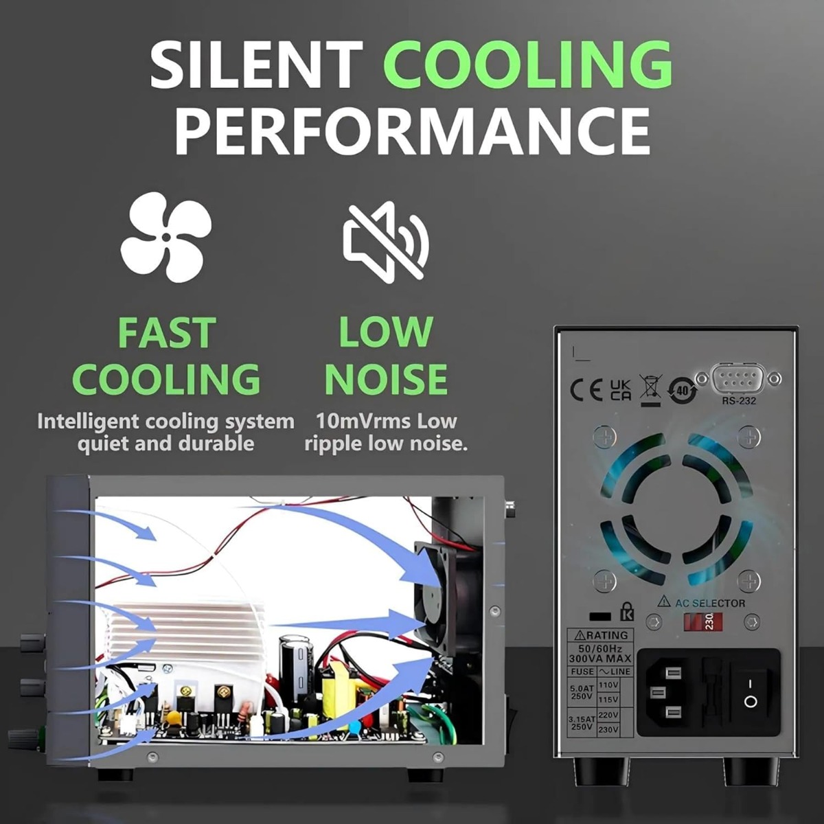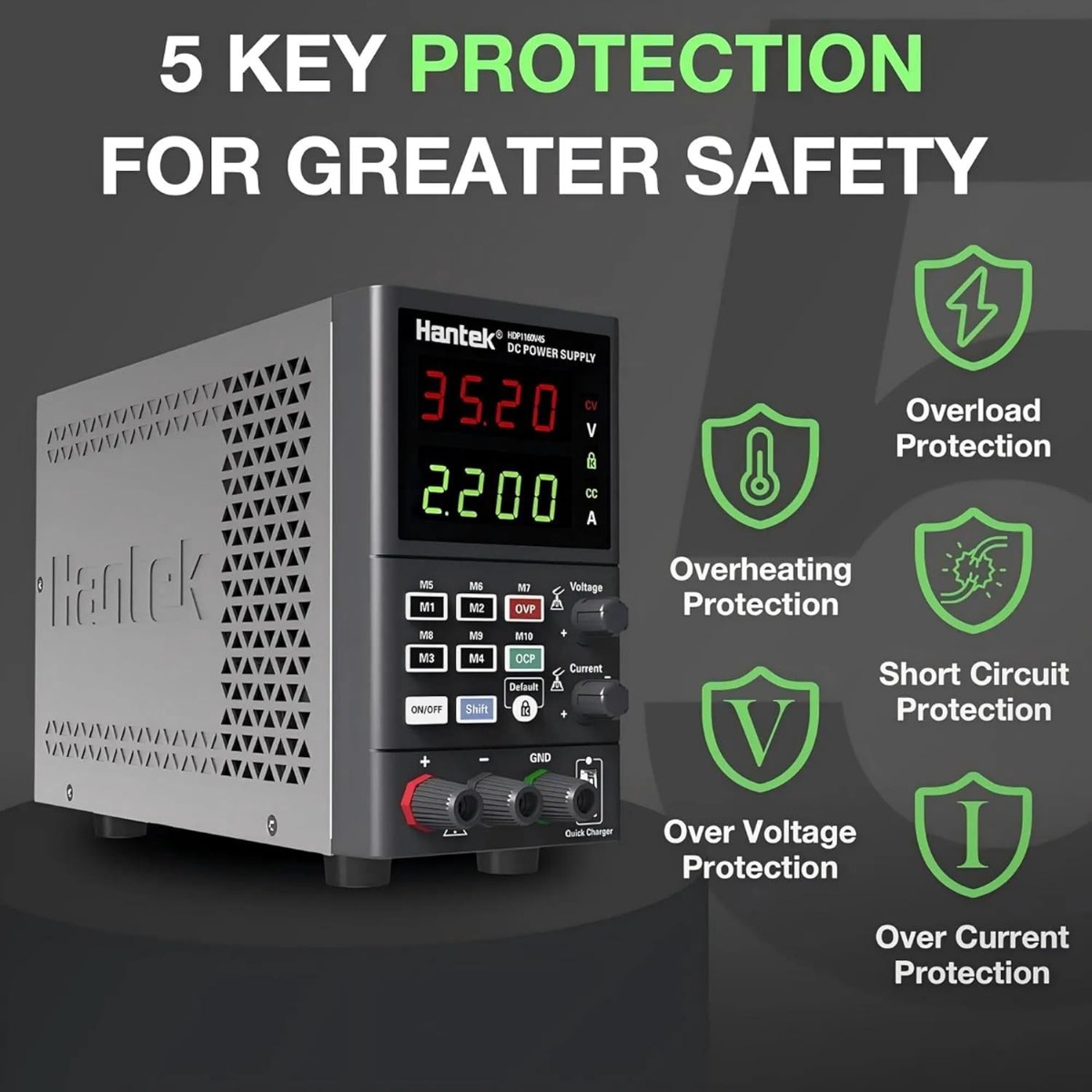 ตัวเครื่องมีระบบป้องกันครบถ้วน เช่น ป้องกันแรงดันเกิน (OVP) และกระแสเกิน (OCP) พร้อมระบบควบคุมผ่านซอฟต์แวร์ และสามารถเชื่อมต่อเพื่อควบคุมหลายเครื่องได้ เหมาะสำหรับงานทดสอบและระบบอัตโนมัติ