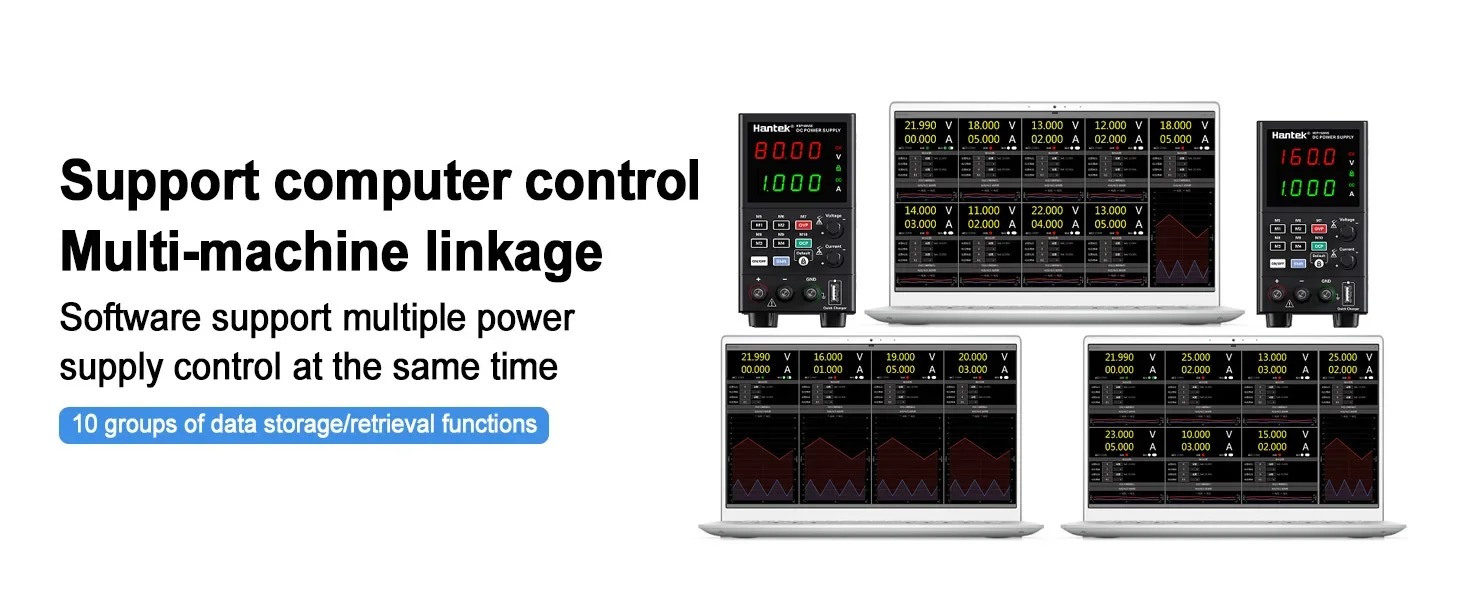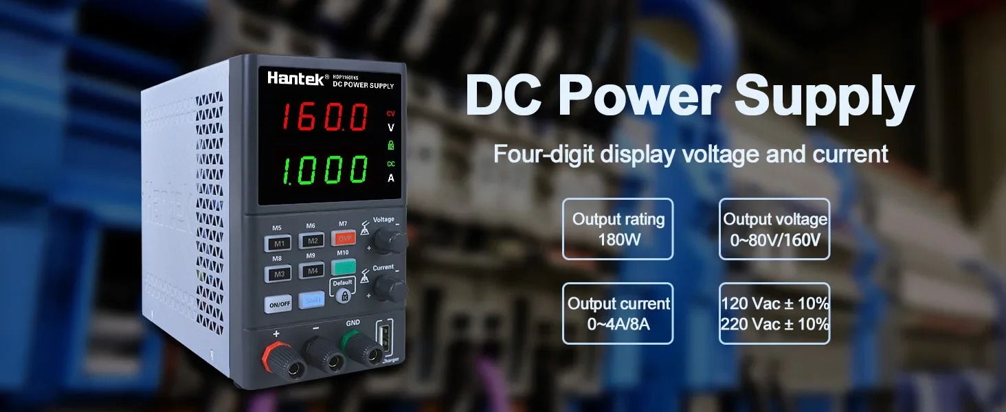 Hantek HDP180V8S แหล่งจ่ายไฟ DC แบบโปรแกรมได้ 80V 8A 180W หน้าจอ 4 หลัก พร้อม USB Fast Charge