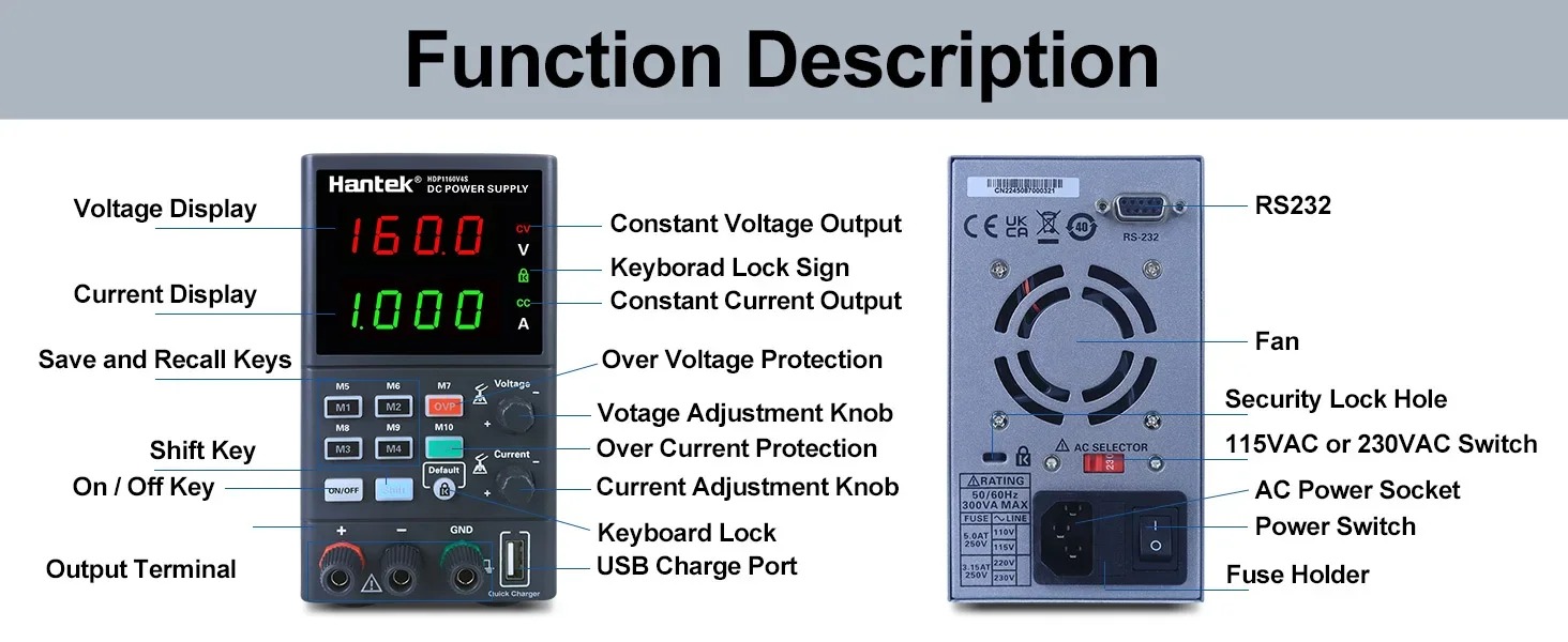 Hantek HDP180V8S เป็นแหล่งจ่ายไฟ DC แบบโปรแกรมได้ ที่ให้ประสิทธิภาพสูงและความแม่นยำในการจ่ายไฟ เหมาะสำหรับงานอิเล็กทรอนิกส์ งานวิจัย และงานทดสอบวงจรที่ต้องการความเสถียรของแรงดันและกระแส ตัวเครื่องออกแบบให้ใช้งานง่าย ขนาดกะทัดรัด และพกพาสะดวก