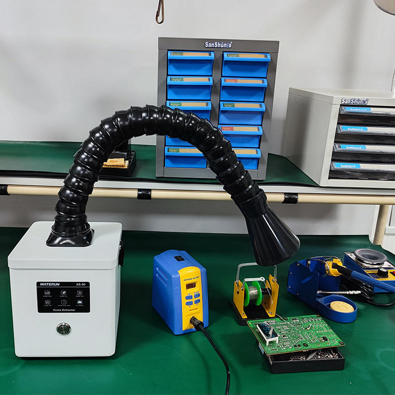 WATERUN XS-50 เครื่องดูดควันแบบพกพา ขนาดกะทัดรัด เหมาะสำหรับใช้งานในพื้นที่จำกัด เช่น โต๊ะทำงาน ห้องแล็บ ร้านทำเล็บ หรือพื้นที่ DIY ช่วยดูดควัน กลิ่น และฝุ่นที่เกิดจากงานบัดกรี งานเลเซอร์ หรือสารเคมีต่าง ๆ ได้อย่างมีประสิทธิภาพ